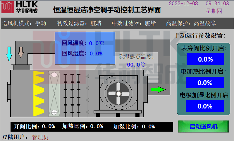 恒温恒湿组合空调控制系统的工作原理基于对室内温度和湿度的实时监测和自动调节。系统通过安装的温度和湿度传感器,实时